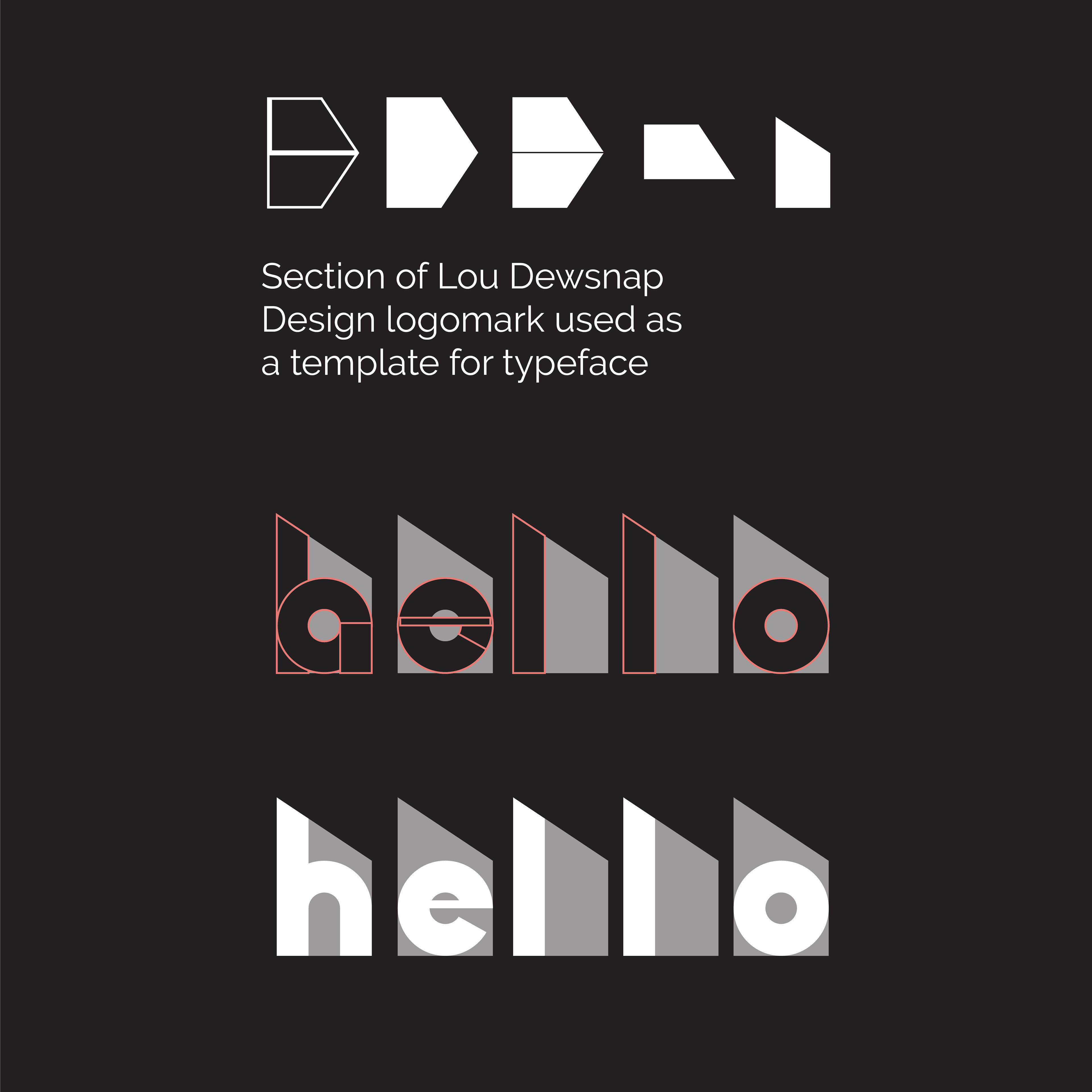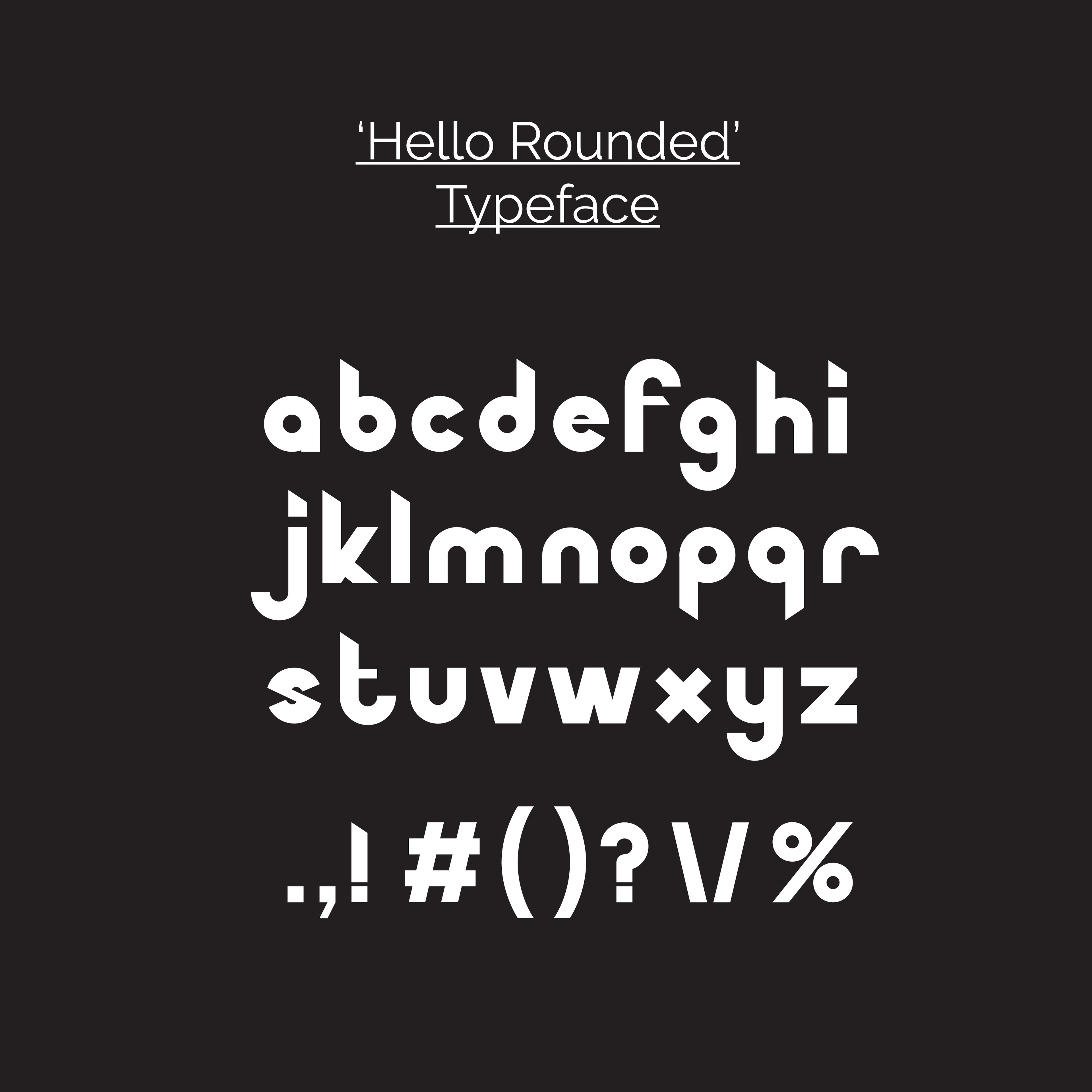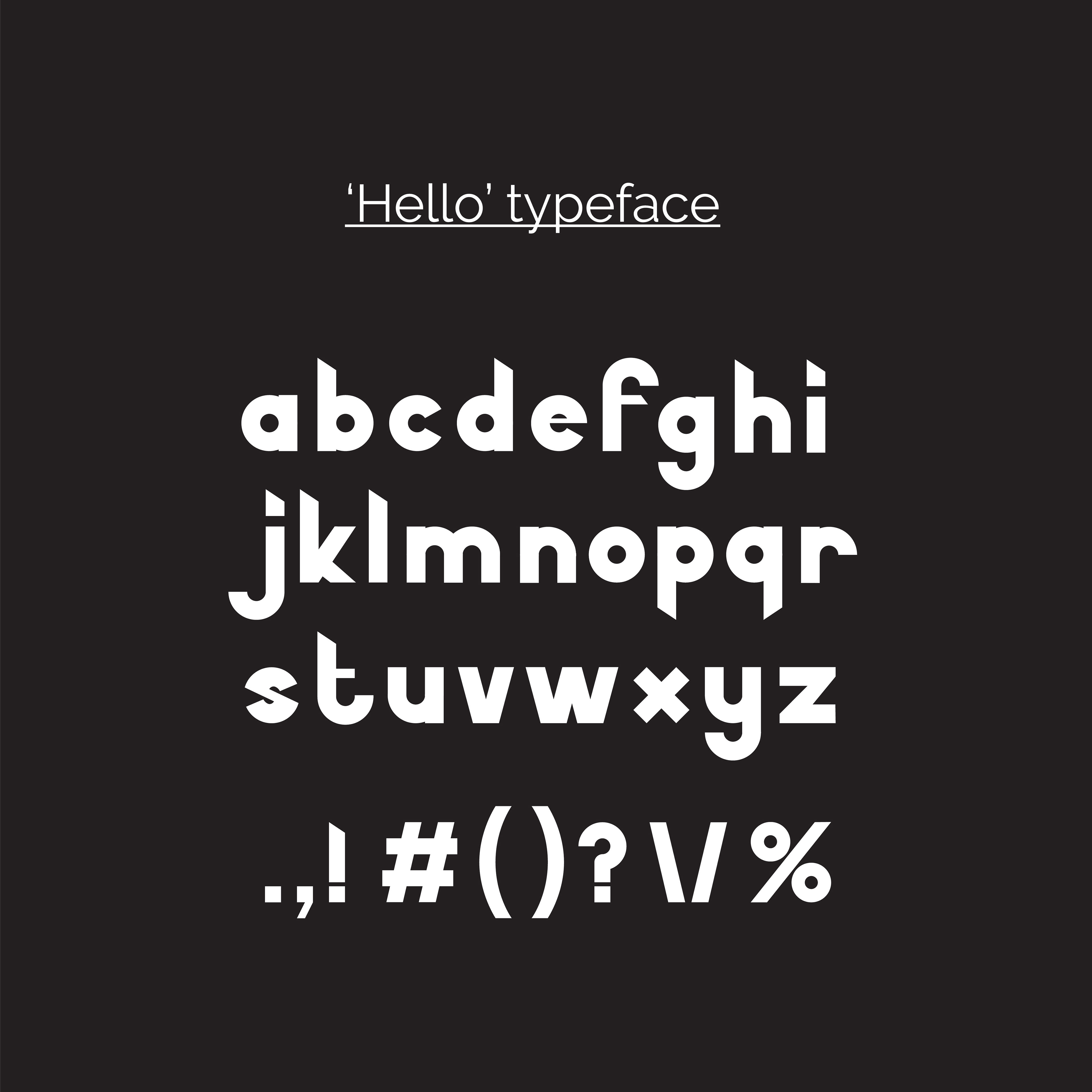 'Hello' is a typeface created by taking a section of my logomark, flipping it and using it as a template for letters, number and glyphs.
